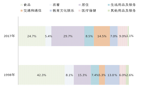 图3 1998年与2017年北京市城镇居民消费结构对比